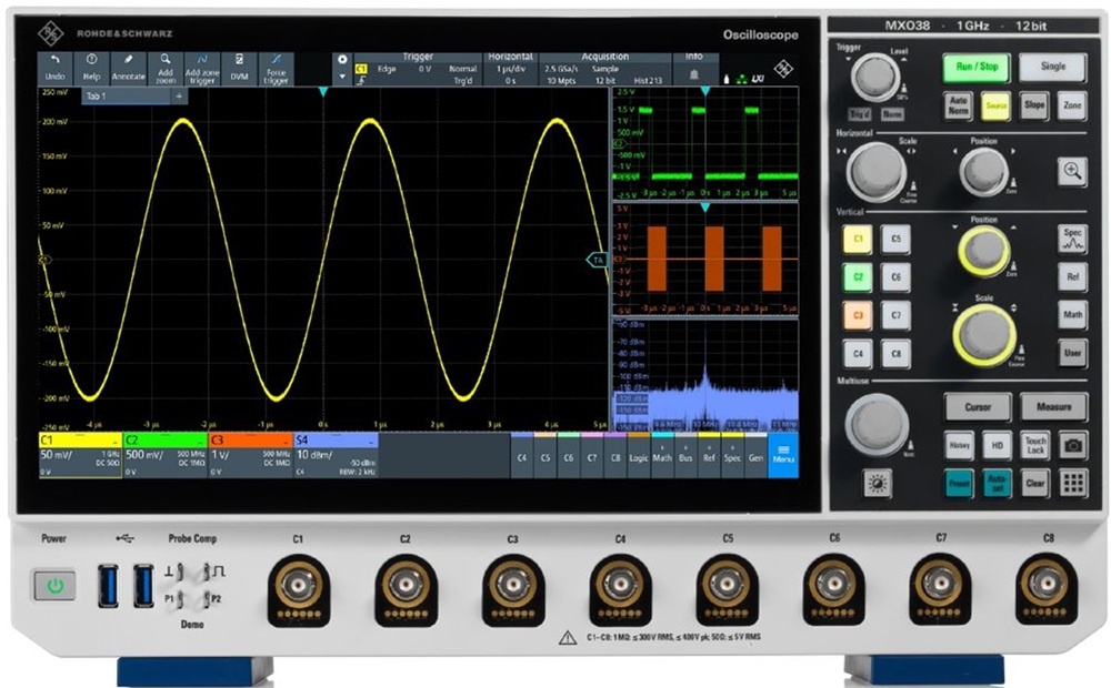 정밀성 • 모든 샘플 레이트에서 속도 저하 없이 높은 분해능을 지원하는 12비트 ADC • 18비트 아키텍처로 동작하는 HD모드 (High-definition mode) • 저 노이즈: 50 uV rms 미만의 노이즈 • 현존 제품 중 최대 오프셋 제공: 1 mV/div 3V에 달하는 오프셋  |