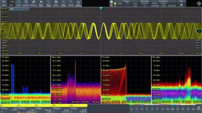 스펙트럼 분석 기능 • 일반적인 방식의 RF 컨트롤: CF, Span, RBW, 시작/정지 • 최대 50,000 ffts/s • 독립적 시간 및 주파수 도메인 설정 • 효과적인 고조파 측정 및 EMI 디버깅을 위한 프리런  |